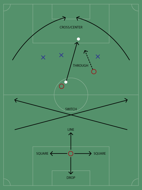 A pass made to open space, through a hole in the defense. Passing to open space like this allows your teammate to run onto the ball and provides opportunities to shoot or draw defenders in order to make another pass.